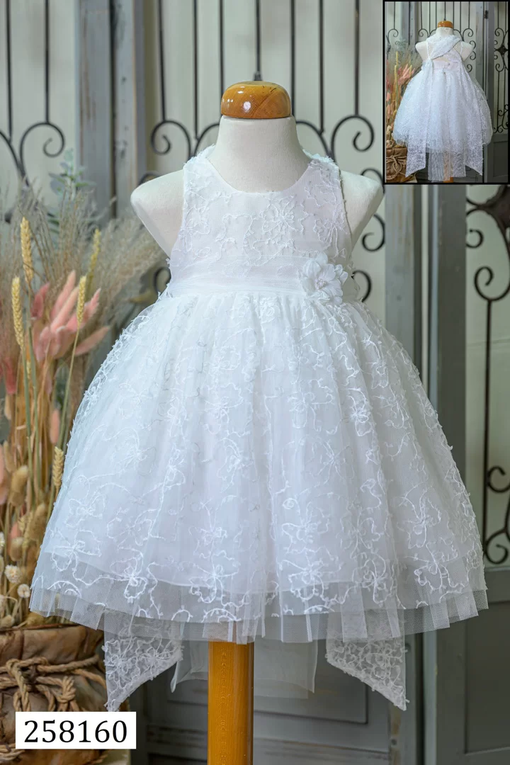Βαπτιστικό Φόρεμα Λευκό Τούλινο με Δαντέλα Bebe en Rose