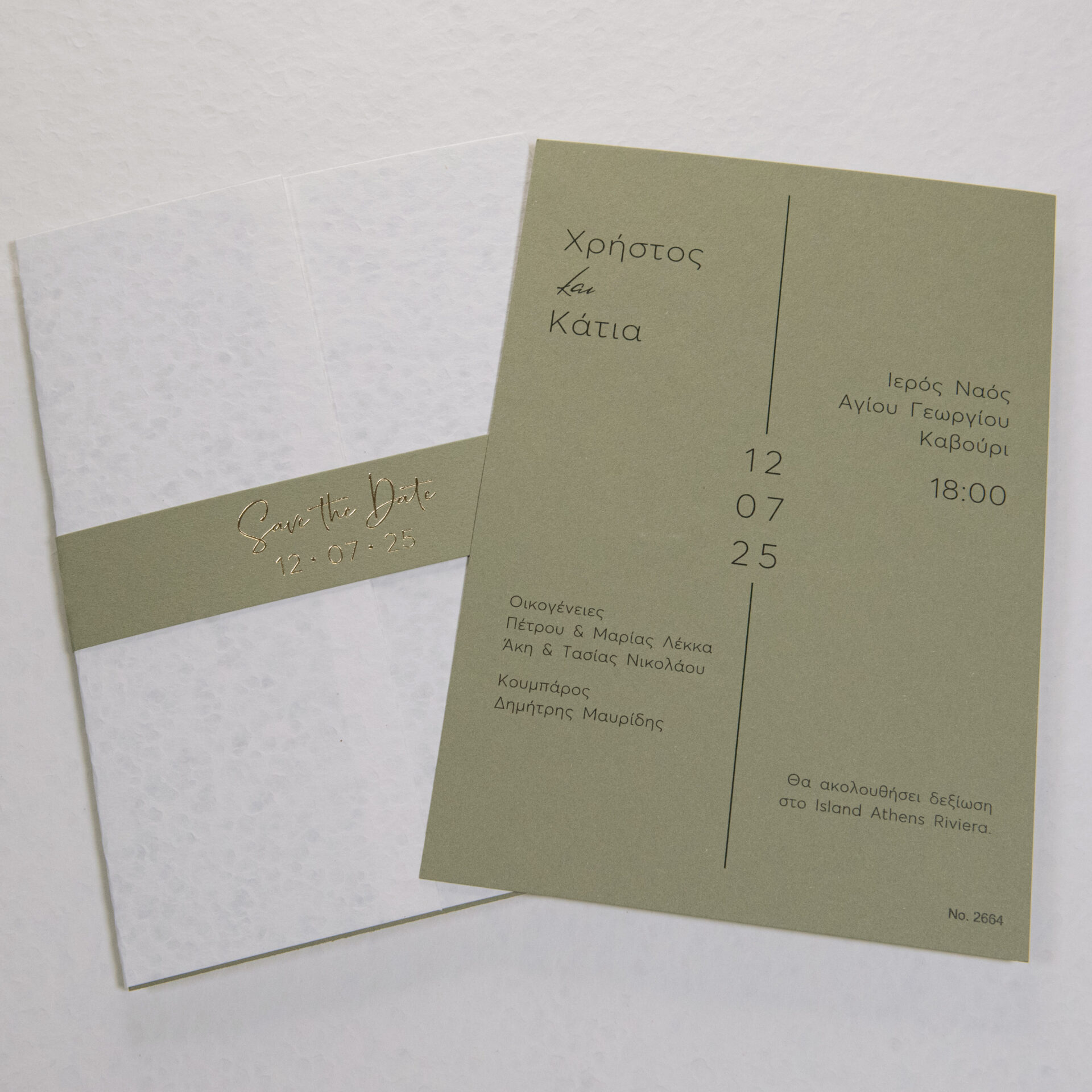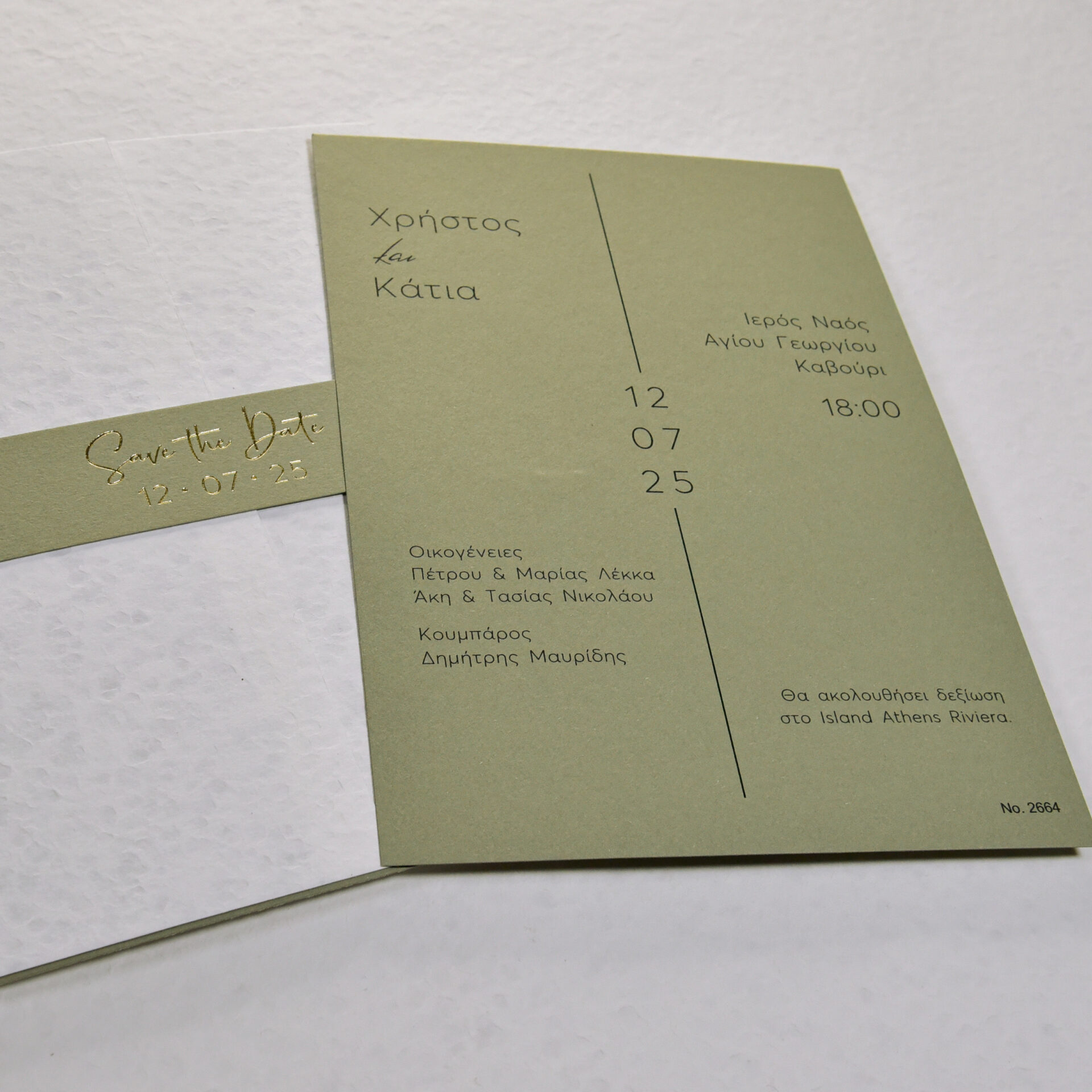 Προσκλητήριο Γάμου σε λαδί απόχρωση. Ο φάκελο είναι σε λευκή απόχρωση και κλείνει με banner.