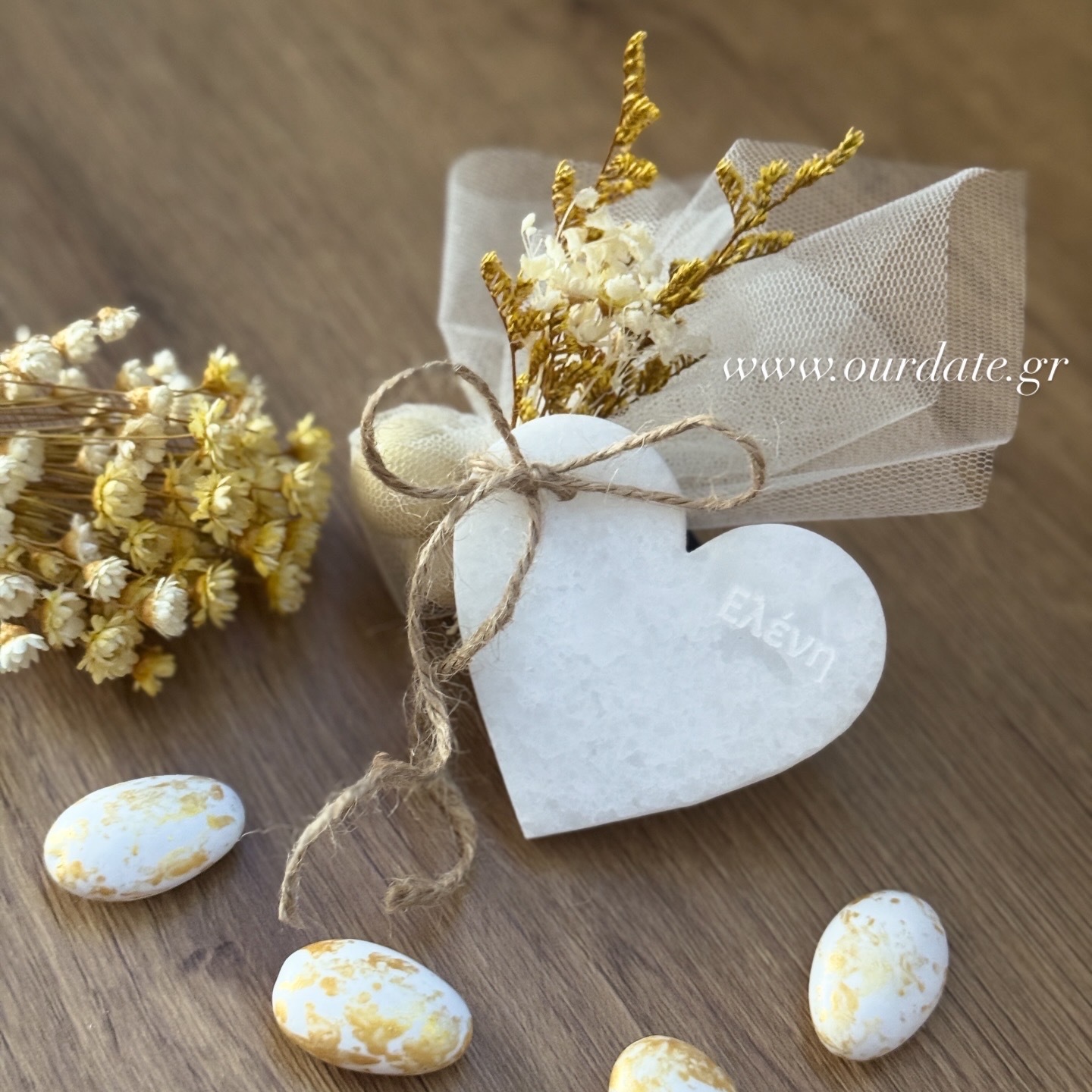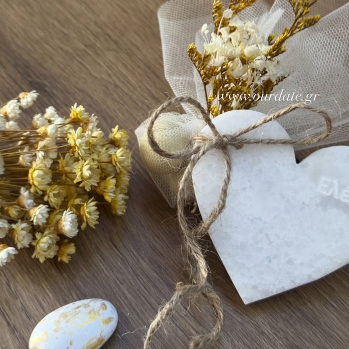 • Πολυτελής χειροποίητη μπομπονιέρα σε σχήμα καρδιάς από μάρμαρο Νάξου.