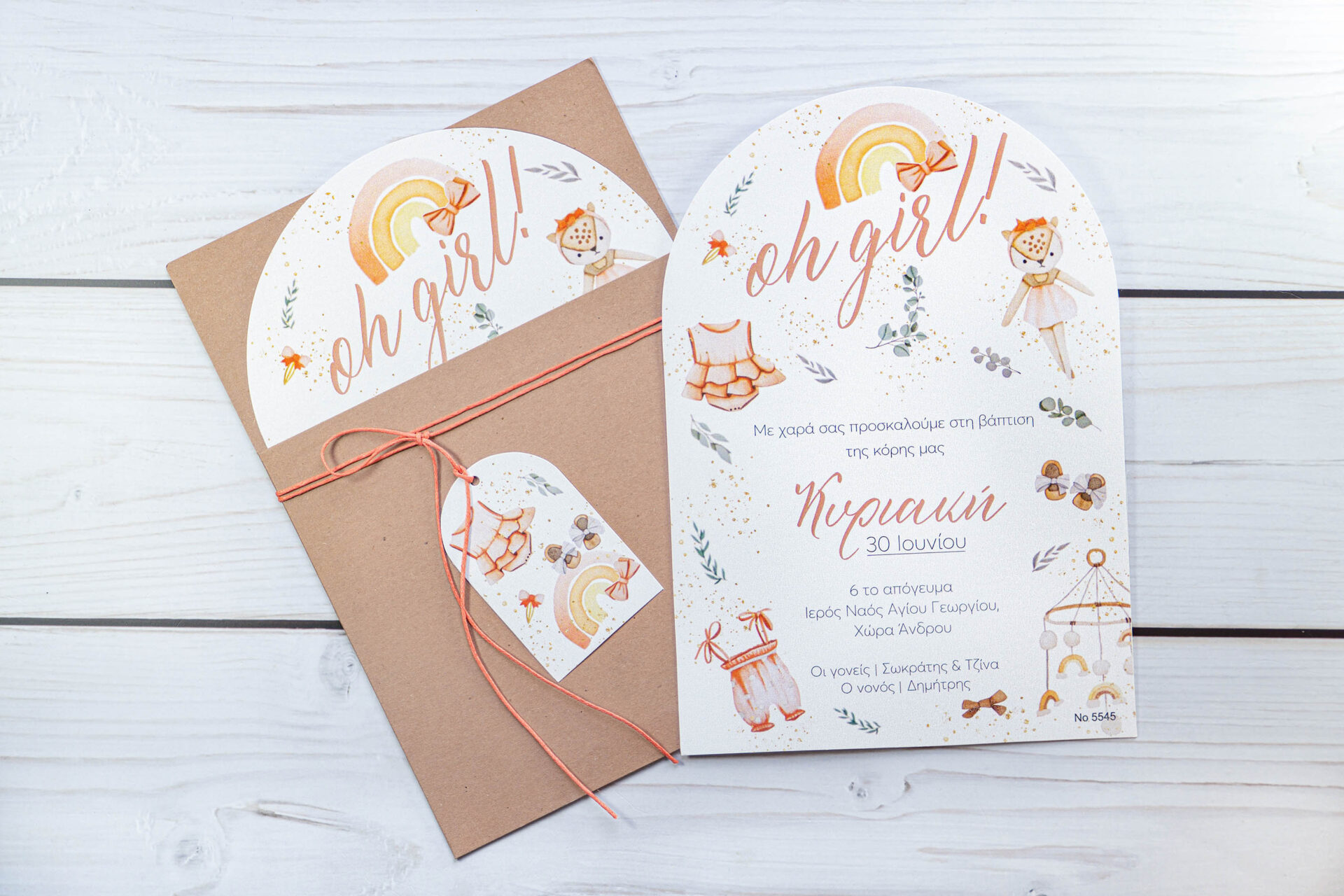 Προσκλητήριο Βάπτισης Ουράνιο Τόξο σε Nude