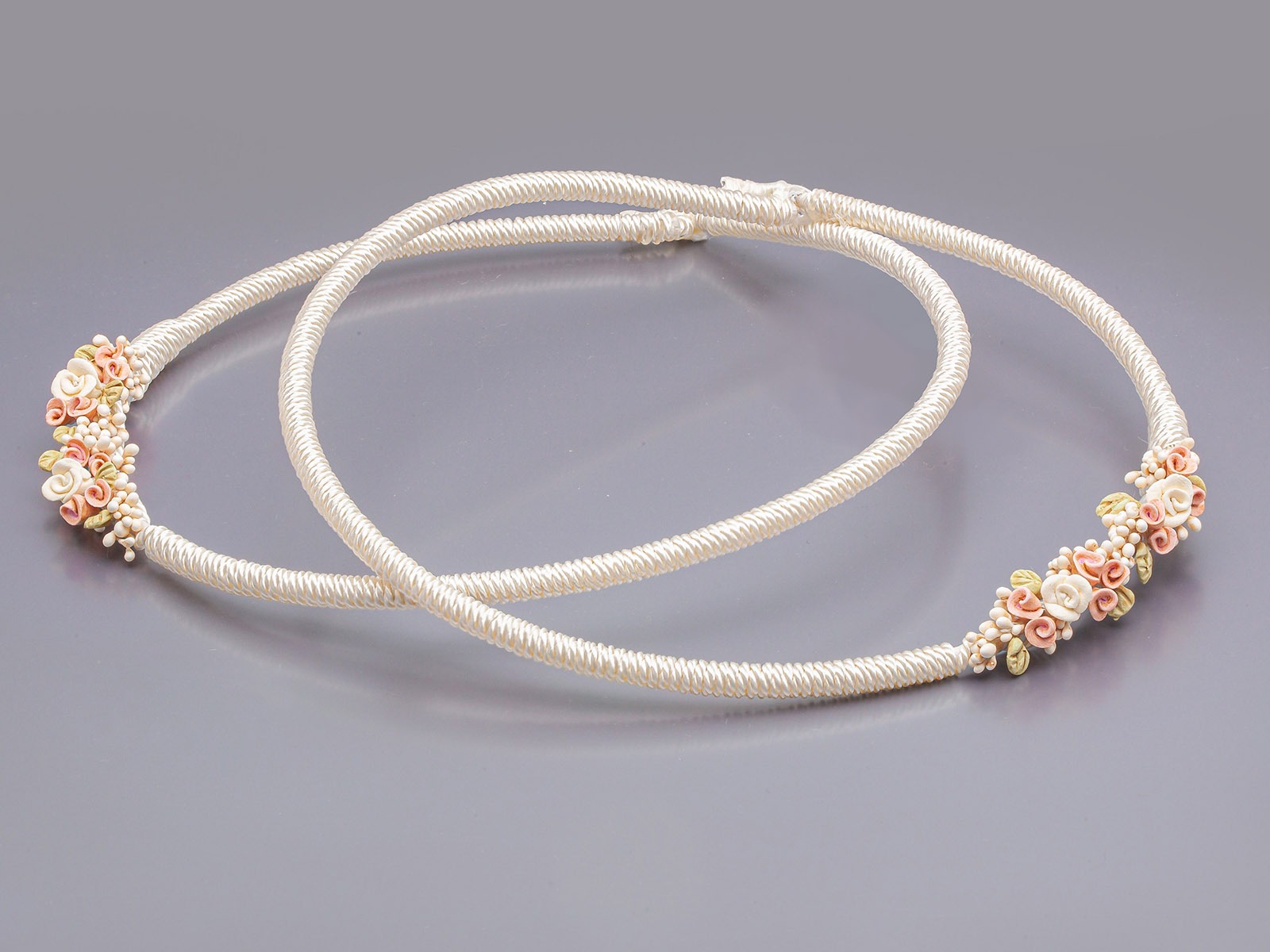 Στέφανα Γάμου με Πορσελάνινα Ανθάκια και Κορδόνι